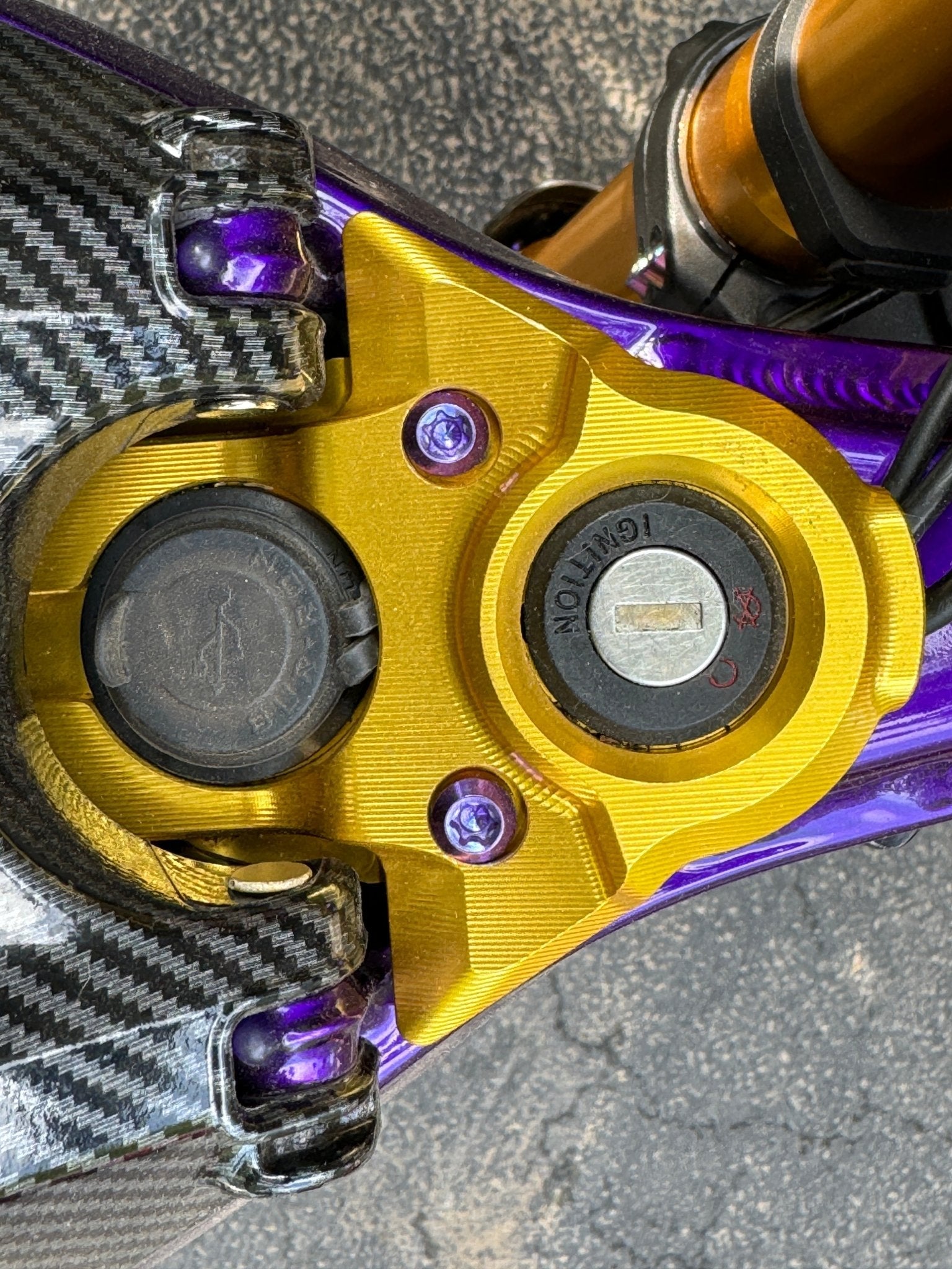 Custom titanium ignition cover for the Surron, Segway, 79 Bike, Rerode, E-Ride Pro and other similar electric motorcycle style bikes.